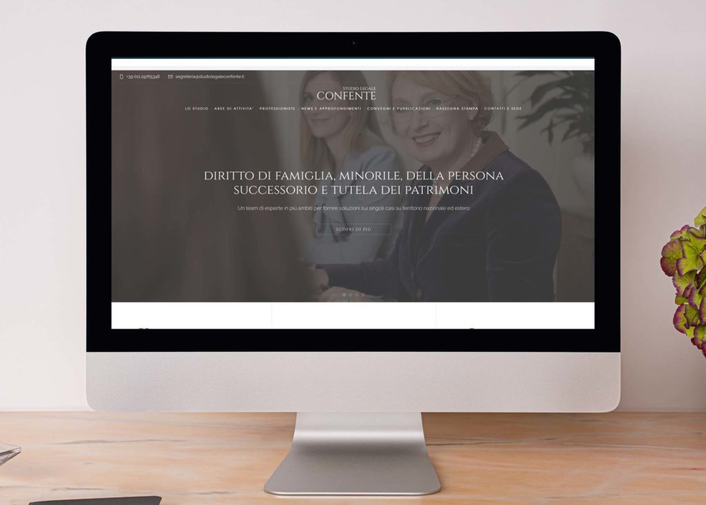 Studio dell’interfaccia del nuovo sito web e realizzazione del servizio fotografico dello Studio Legale Confente. La richiesta riguardava una maggiore chiarezza nella presentazione dei contenuti e dei servizi offerti e nella presentazione degli associati e delle loro aree di attività.